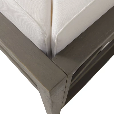 2pc Brava Outdoor Acacia Wood Right Arm Loveseat & Coffee Table With Cushion Gray/White – Christopher Knight Home
