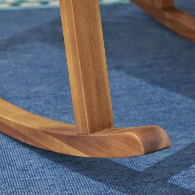 Enjoy relaxed evenings and romantic sunsets in absolute luxury. Featuring a modern cross-back design and a gentle rocking feature, our set of two rocking chairs brings both incredible comfort and breezy coastal vibes to your outdoor space. This charming set is crafted from rich acacia wood and is topped with cozy cushions, making it your new favorite place to sit back and unwind.