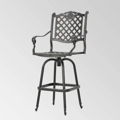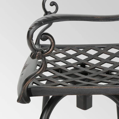 Featuring a raised table and 4 armed barstools, this Christopher Knight Home Arlana 5pc Cast Aluminum Bar Set works well on a patio or next to your swimming pool. Ornate metalwork and a shiny copper finish give this set a classic look, making it perfect for enjoying a morning cup of coffee with a friend or an evening meal. Place this Christopher Knight Home Arlana 5pc Cast Aluminum Bar Set in your backyard, patio or garden to create an intimate outdoor dining space.