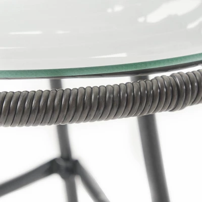 Fashion your backyard or patio with seating that can be your own slice of the great outdoors. Our chat set perfectly blends faux rattan and metal to emphasize its superior excellence and to bring your outdoor space together with a flourish. This set features thin angled frames and tempered glass, providing a stylish flair to your outdoor space while offering a minimalistic yet durable structure. With a wrapped rattan design and encapsulating seating, this set brings a modern twist to a classic look, making this ideal for any style of decor.