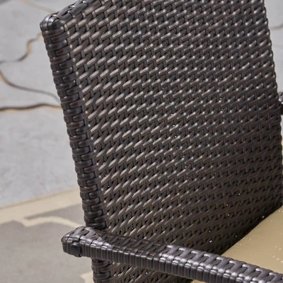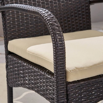 DURABLE WICKER CHAIRS – This dining set includes six wicker chair with cushions; the cushion covers can be removed and cleaned in any conventional washing machine. Your purchase includes six chairs total.