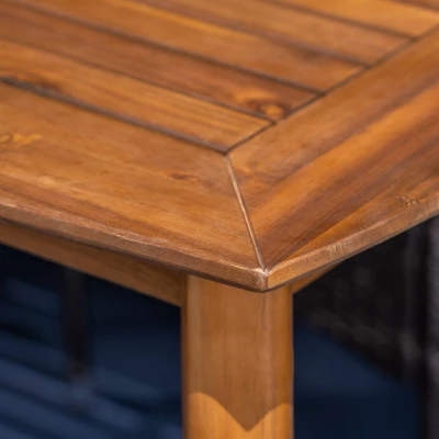 The beautiful blend of wood and wicker comes to life with this Christopher Knight Home Clint 7pc Acacia and Wicker Dining Set. Complete with six stacking wicker dining chairs, you can enjoy eating in your backyard whenever you want. The wooden table is treated to withstand even the harshest of seasons, ensuring your set looks great all year long. The rectangular table ensures that there is enough space for both food and people, meaning no one leaves the table hungry.