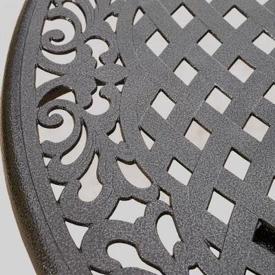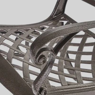 The Christopher Knight Home Hallandale Sarasota 5-piece Cast Aluminum Patio Dining Set is a beautiful addition for your outdoor decor. Made from cast aluminum, the set includes four dining chairs and one mesh table. The features include a mesh back and seat rest and the table also features a patio umbrella opening. The antique bronze finish is neutral to match any outdoor furniture and will hold up in any weather condition. Whether in your backyard, patio, deck or even your restaurant outdoor dining space, youll enjoy this set for years to come.