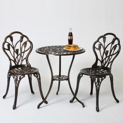 Create an intimate setting in your outdoor dining area with this Nassau 3 pc Cast Aluminum Patio Bistro Set from Christopher Knight Home. This elegant cast aluminum dining set is just the right size for enjoying a quaint breakfast or lunch with a loved one. Featuring intricate metal detail, this outdoor table offers European charm. Use this Christopher Knight Home Nassau 3 pc Cast Aluminum Patio Bistro Set on your patio, in your backyard or even in your garden for a unique dining experience.