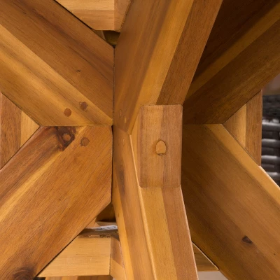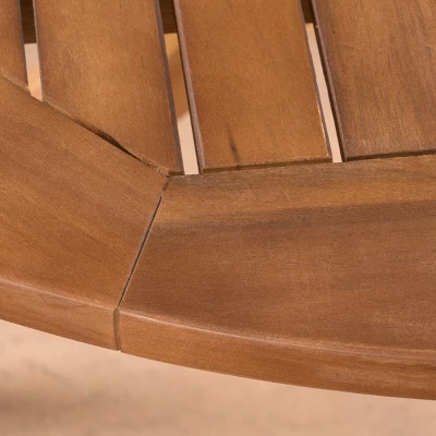 ACACIA WOOD TABLE: This durable hardwood is a solid, heavy frame that naturally withstands the elements and resists wear and tear.