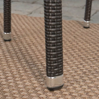 This clean and simple dining set combines the functionality of wood and aluminum with the comfort of wicker. Complete with a table, and 6 wicker dining chairs, this set offers comfortable seating in the great outdoors. Sure to complement any patio décor, this dining set offers you a stylish wooden design with the functionality of an iron framework and comfortable wicker chairs, guaranteed to give you a weather resistant set that will last your for years to come.